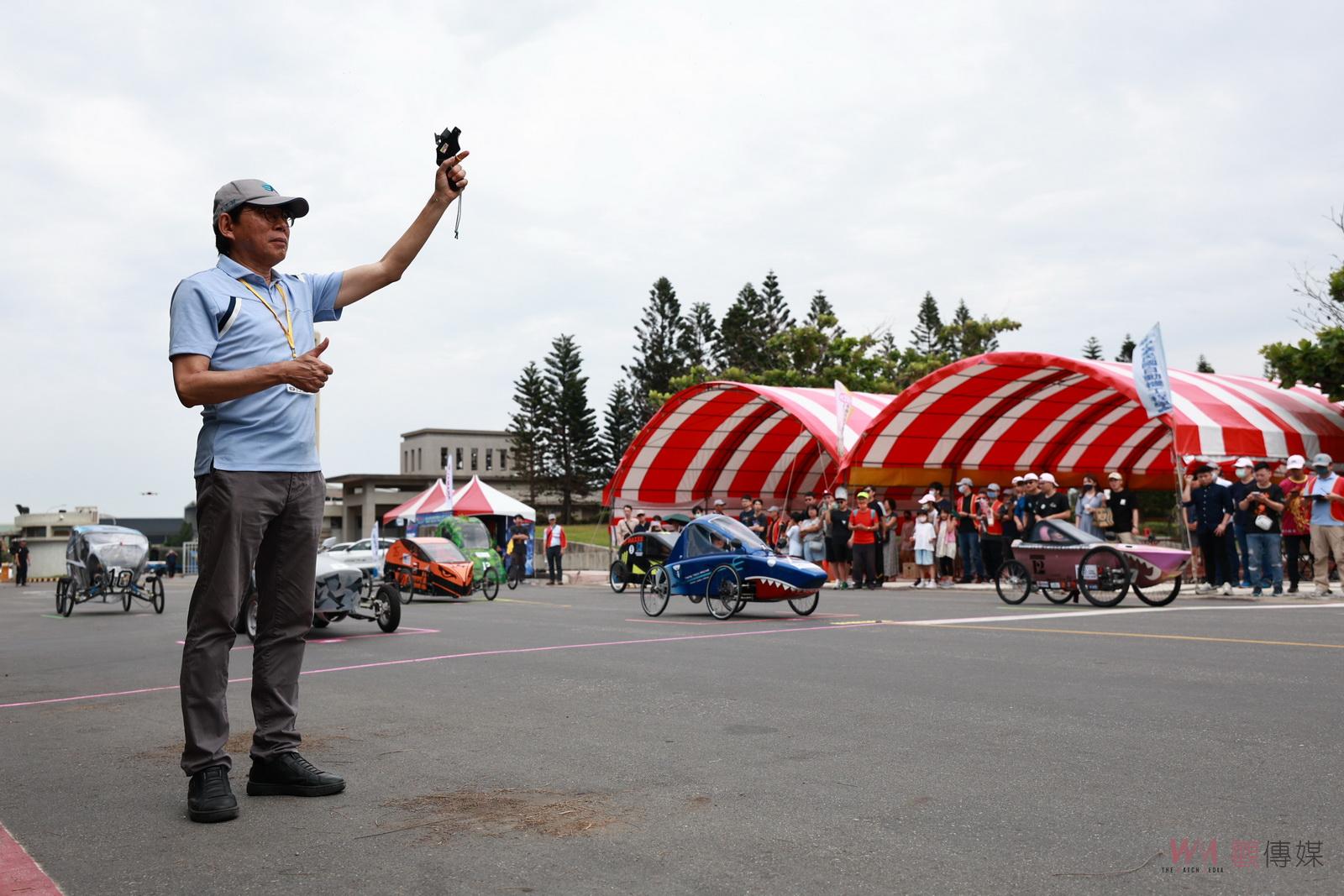 ▲第32屆SAE全國大專校院環保節能車賽在王正健理事長鳴槍下揭開賽事序幕。