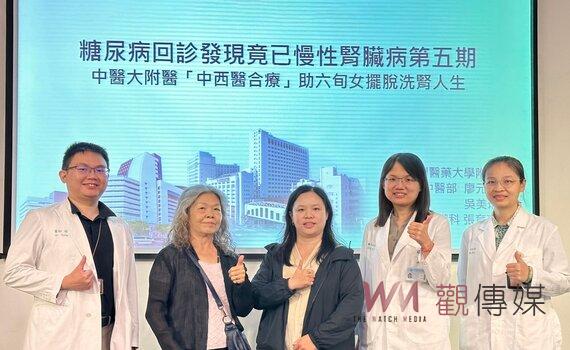 (觀傳媒中彰投新聞)【記者廖妙茜/台中報導】隨台灣人口逐漸高齡化,飲食及三高慢性疾病增加等問題,腎臟病已成為台灣新國病,據統計,台灣逾9萬人洗腎人口竟居全球第一。一位68歲的李女士罹患糖尿病已20年,在某次回診時,抽血報告竟發現腎絲球過濾率剩8分,屬慢性腎臟病第五期臨近洗腎邊緣。透過網路資訊,李女士至中醫大附醫進行中西醫合療,在一年內腎絲球過濾率提升,血鉀穩定4.0,免於洗腎帶來的生活困擾與痛苦。