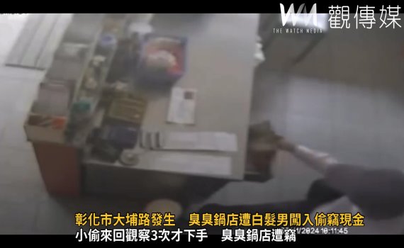 (觀傳媒彰化新聞)【記者陳雅芳/彰化報導】飢寒起盜心?彰化市大埔路一家臭臭鍋11日上午還沒開始營業,一名白髮老翁路過店前發現四下無人,立即潛入櫃台偷走1萬6500元現金,從容步行離開;被害店家直到營業後要找錢給客人,才發現櫃台內的現金已全部不翼而飛,氣得報警追查,警方積極追緝中。