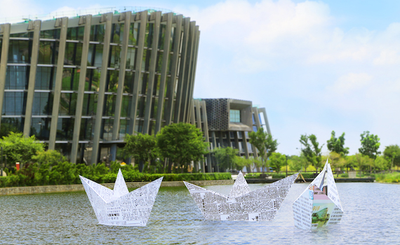 故宮南院表示,這次水樂之夜,除加強故宮文物轉化當代藝術的趣味外,更以3艘放大摺紙船做為水上藝術裝置,船身的舊報紙具體地記載著故宮落腳臺灣的重大時間點;第一艘紙船,舊報紙的時間顯示在「民國46年3月24日」,臺中霧峰北溝陳列室當天正式開放,故宮文物以一季為一期輪流更換展,這是故宮在地化的第一步;第二艘紙船的時間點為「民國54年」,故宮博物院在臺北士林的展館開幕,以博物館的身分向觀眾見面;第三艘紙船已見到彩色的新聞頁面,正是故宮南部院區在籌備15年後,在「民國104年12月28日」開館營運的消息。