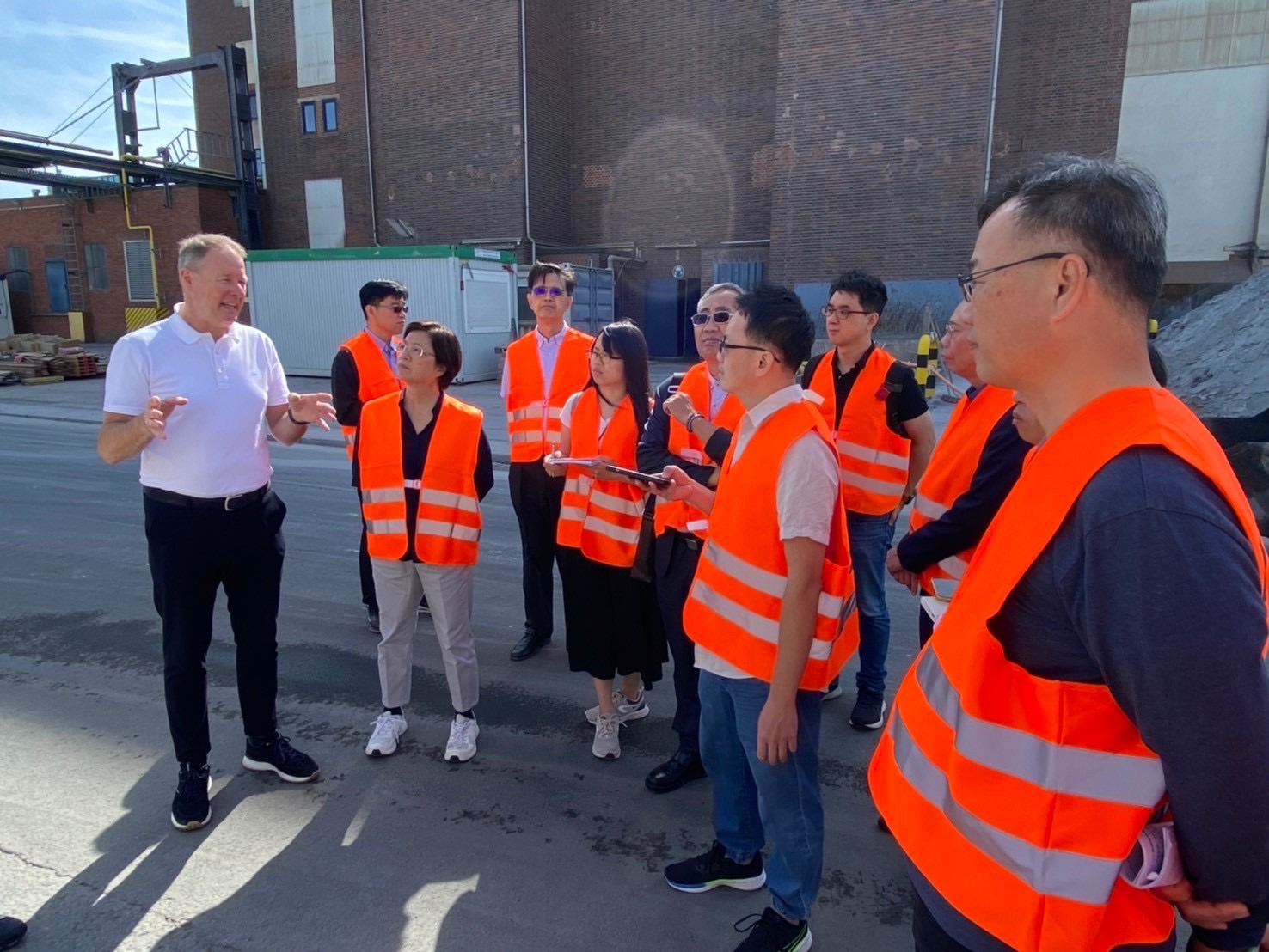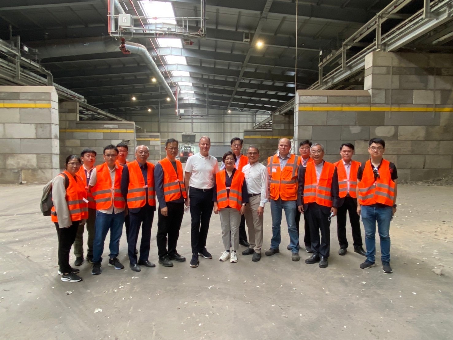 王惠美一行,由瑞曼迪斯總經理陸博德親自接待,參觀占地230公頃的利柏循環園區,區內擁有多項資源循環設施,包括廢塑膠再利用廠、金屬回收廠、化製廠、廢電子電機回收廠、無機礦物回收廠、有機物質堆肥廠、廢木材生質能源廠及發電廠。