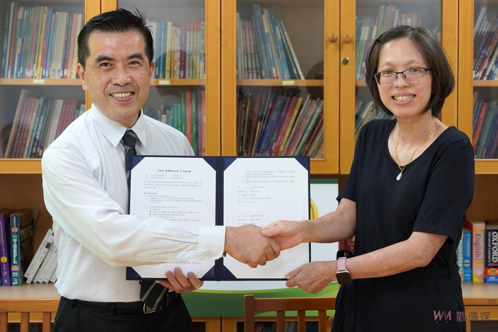 ▲大葉大學外語學院李美麗副院長(右)與忠欣股份有限公司徐一致經理(左)代表雙方簽約。