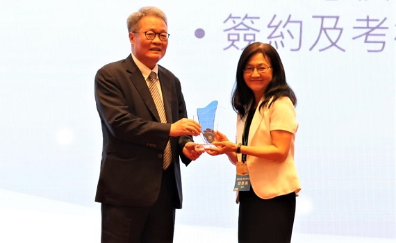 財政部23日舉行「113年民間參與公共建設招商大會」頒獎典禮,邱惠美代表市府領獎。邱惠美表示,侯友宜市長以「智能城市」為出發點,以前瞻的角度思考,持續推動捷運、交通、都更等公共建設,期勉市府團隊積極排除投資障礙,全力引進民間創意、效率與資源,滿足市民高品質的公共服務需求。