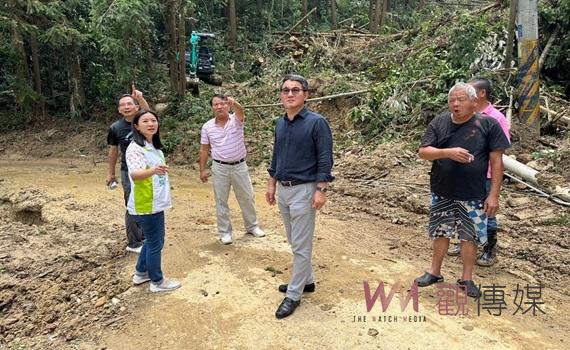 (觀傳媒雲林新聞)【記者蘇榮泉/雲林報導】凱米颱風重創南台灣,雲林縣首當其衝。立法委員劉建國應古坑鄉長林慧如及地方民意代表村長們的請求,緊急前往古坑山區多處災區進行視察。由於颱風帶來的豪雨,華山、樟湖、草嶺、桂林等地區道路被迫封閉,落石和倒塌的樹枝不僅阻礙了交通,也影響了台電搶修團隊的工作。劉建國隨即邀請台電雲林區處龔良智處長、農村發展暨水土保持署南投分署簡主辦及相關單位,前往華山溪、華山教育農場、華山小天梯步道、石橋山莊等地勘查災情。