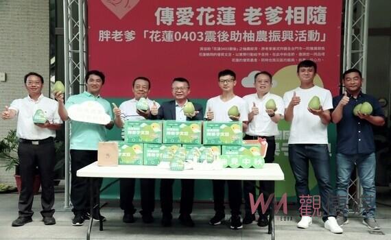 (觀傳媒中彰投新聞)【記者廖妙茜/台中報導】為擴大國產優質文旦柚銷售通路,今(30)日農業部農糧署輔導藍天農業生產合作社及花蓮鶴岡青農,與胖老爹炸雞有限公司攜手合作辦理「傳愛花蓮振興柚農記者會」,搶先曝光全臺最優文旦柚禮盒(10斤)及金寶柚文旦禮盒(單粒),並宣布自8月1日起至9月9日止,於胖老爹全臺375家分店門市預購販售。今日活動由農糧署姚志旺副署長親自出席,特別感謝胖老爹及藍天合作社在 0403 花蓮強震後的愛心支援,協助農民銷售文旦柚,透過辦理行銷活動讓消費者買文旦柚搭配炸雞,消暑又解膩,陪您一起暖心過中秋,傳愛到花蓮!