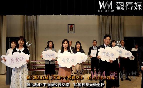 (觀傳媒彰化新聞)【記者陳雅芳/彰化報導】杏壇大換血!彰化縣113學年度中小學校長交接典禮於今(31)日上午在彰化藝術高中展翼館舉行。典禮由縣長王惠美主持,共有42所國中小學校參與交接儀式,教育處長蔡金田擔任監誓人,主計處長蕭秀瑛擔任監交人。