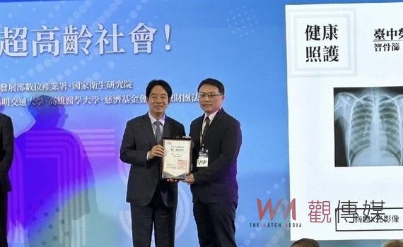 (觀傳媒中彰投新聞)【記者廖妙茜/台中報導】臺中榮總由李政鴻副院長率隊至台北參加首屆高齡健康產業博覽會,宣示超高齡社會的醫療與養護大未來的願景。博覽會中,臺中榮總展示的「智骨篩」智慧醫材軟體榮獲十大高齡友善特色產品殊榮,由總統賴清德親自頒獎。這一殊榮顯示了臺中榮總在高齡健康領域的創新與潛力。
