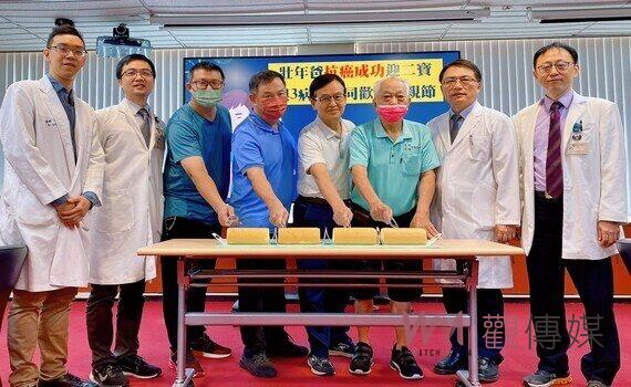 臺中榮總於今(8日)邀請蔣先生、廖先生和其他2名同樣罹患大腸癌、經達文西手術治癒的病友胡先生(65歲,初期大腸癌)和陳先生(66歲,第三期大腸癌),一同慶祝父親節,呼籲平日辛勞的爸爸們重視身體健康。