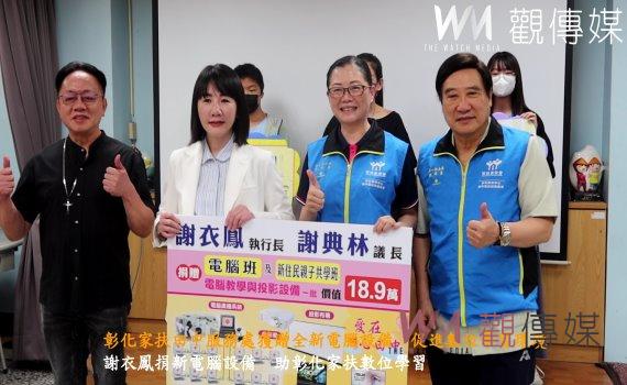 (觀傳媒彰化新聞)【記者陳雅芳/彰化報導】彰化家扶田中服務處今(8)日收到電腦教室廣播系統、筆電、投影機、投影布幕各一組和7部電腦螢幕,財團法人謝言信謝林玉鶯文教基金會執行長立法委員謝衣鳳出席捐贈會時說,家扶扶助弱勢的家庭和孩子,得到全新電腦設備可強化數位學習環境,改善弱勢兒少的電腦技能與AI競爭力。