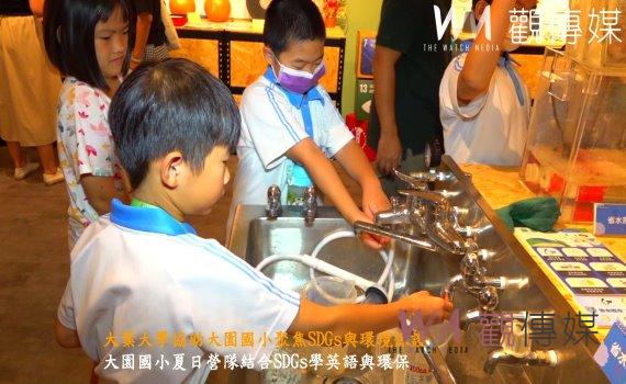 (觀傳媒彰化新聞)【記者陳雅芳/彰化報導】大葉大學英語學系副教授張智惠於7月29日至8月9日協助大園國小舉辦113年夏日樂學計畫。此次計畫通過以英語為主題的課程,引導小朋友了解聯合國永續發展目標(SDGs),並提高他們的英語能力,今(9)日營隊活動轉移至大葉大學SDGs校園實踐場域,讓小朋友體驗節水和節能裝置,深入了解永續議題。