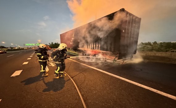 這起火燒車意外發生在中山高北上197公里彰化路段,彰化縣消防局在今(12)日清晨4時52分接獲報案,調派消防車及救護車趕往處理,到場時,發現拖車已陷入火海,所幸楊姓駕駛及時逃出車外,意識清醒,但身體不適送彰化基督教醫院救治。