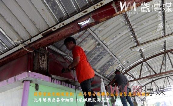 (觀傳媒彰化新聞)【記者陳雅芳/彰化報導】彰化田尾鄉南曾村一弱勢民眾居家環境十分差,凱米颱風過境導致房屋毀損漏水,更是雪上加霜,北斗警分局田尾分駐所員警林耕竹得知後回報,透過彰化警察志工中隊號召慈化慈善會,今(14)日動員人力幫忙修繕,讓張姓民眾一家人不用在擔心半夜下大雨。