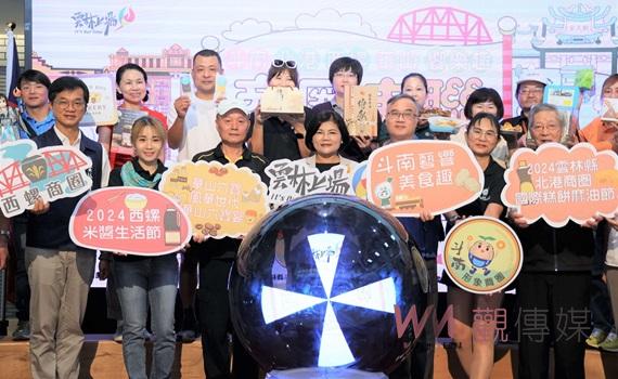 ▲雲林縣政府與雲林縣四大商圈攜手策劃「斗南.北港.西螺.華山饗樂趣~商圈串聯嗨翻天」系列活動,16日上午於縣府舉行宣傳記者會。