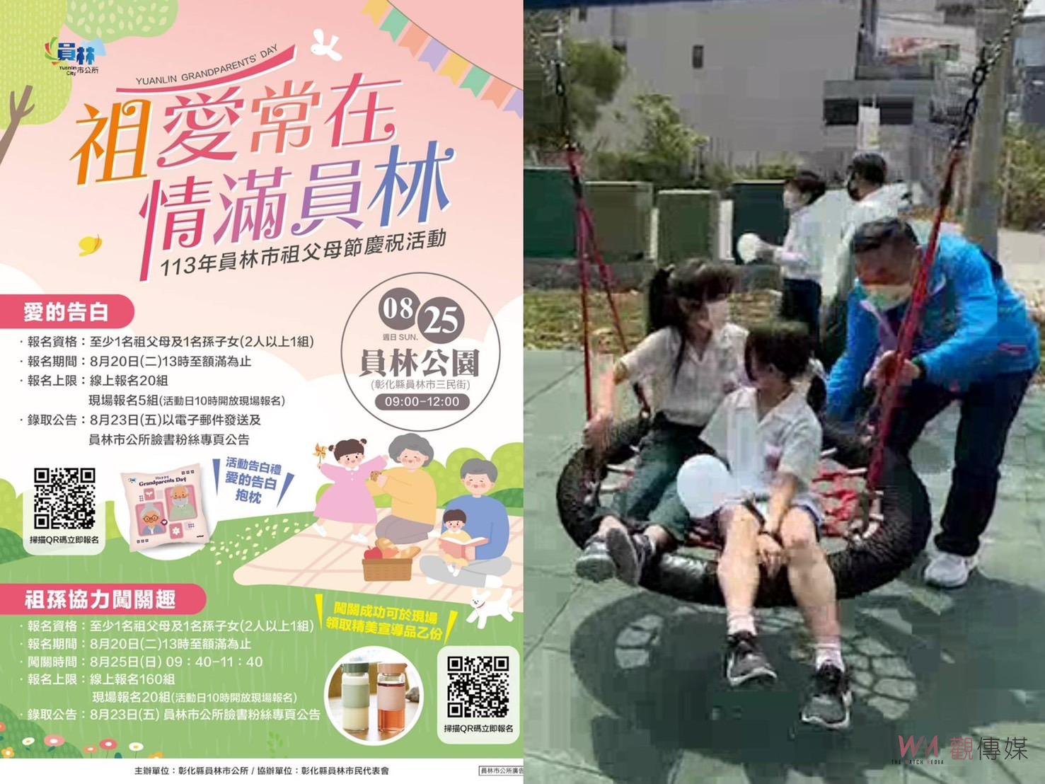 (觀傳媒彰化新聞)【記者陳雅芳/彰化報導】每年8月的第4個星期日為「祖父母節」,為促進祖孫互動,喚起對親情與孝道的重視,員林市公所選在8月第4個星期日「祖父母節」當日,將於員林公園舉行113年度祖父母節慶祝活動,讓孫輩透過「愛的告白」,對祖父母的感謝大聲說,在「祖孫協力闖關趣」互動遊戲間拉近世代間的距離。
