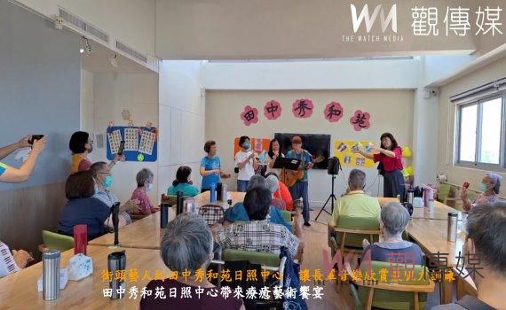 (觀傳媒彰化新聞)【記者陳雅芳/彰化報導】田中秀和苑日照中心今(21)日有一場熱鬧滾滾的音樂表演,由街頭藝人「阿里山師兄」帶領的表演團體,利用吉他、琅琊鼓、葫蘆絲以及美妙的歌聲演奏一首又一首懷舊樂曲,為中心內的長輩帶來一場療癒人心的藝術饗宴。