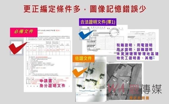 為此,地政局提出「更正編定條件多,圖像記憶錯誤少」創新措施,期能在國土計畫新制度上路前,提供民眾證明文件圖示化,使其理解記憶,加速案件辦理流程,以確保民眾權益。