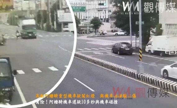 (觀傳媒彰化新聞)【記者陳雅芳/彰化報導】命懸一線!彰化縣86歲林姓阿嬤騎乘機車要去加油,在彰化市彰鹿路的加油站前與一對男女共乘的機車發生碰撞,3人均被噴飛倒地,阿嬤當場倒地手腳骨折,沒有生命危險。彰化警方調查發現,阿嬤不只在路口闖紅燈部分違規,持有輕型機車駕照卻越級騎乘普通重型機車也違規,都將開罰。