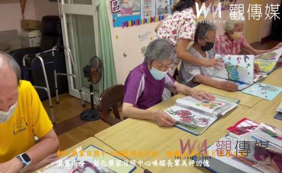 ▲彰化榮家日照中心照顧多位失智失能長者,透過過往的活動相片、錄影、手作勞作作品,讓他們談談往事、說故事,來刺激活絡腦細胞。