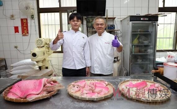 勞工局指出,精彩創作還有吳麗雅及紀佩錡的花藝作品《柳川漫漫》,將百年來柳川經歷之光陰及波折的漫漫歲月,至近年被定位為生活休閒之河的重生歷程,以陶製花器搭配草本、木本花草植物呈現;父子檔林逢盛和林易星的金工作品《台中時光寶藏》,將台中縱橫時光及甘醇回憶,包含過去、現在、未來的時空變化,以新世代之金工技法結合傳統打金技藝,展現美好時光的感動;另一對父子檔陳志昌、陳相宇的烘焙作品《鳳片龜》則將台中大肚山特產紅土花生入餡製作成鳳片牲禮,展現傳統敬天禮神、圓滿祈福的祭祀文化。