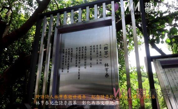 彰化是台灣文壇的重要搖籃,培育出許多舉足輕重的文學家,為了讓鄉親認識彰化文學家,彰化縣政府自2001年興建八卦山文學步道,兩旁設立13座詩亭,有賴和、陳肇興、洪棄生等文學名家的代表作及生平介紹,今(13)日新增第14座「林亨泰紀念詩亭」,緬懷跨語詩人林亨泰一生對於台灣文學的貢獻。