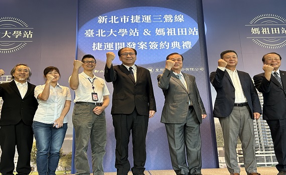 (觀傳媒新北新聞)【記者蔡宇辰/新北報導】新北捷運局持續推動三環六線交通建設,全力拚捷運三鶯線2025年完工,同時,更以捷運車站作為發展核心,規劃三鶯線全線7處出入口辦理捷運開發案,目前已有4處招商成功,已實現招商過半!其中規模第二大的媽祖田站及臺北大學站捷運開發案於13日舉辦簽約儀式,由新北捷運局長李政安與皇翔建設董事長廖年吉共同簽署投資契約,打造優質捷運生活圈。