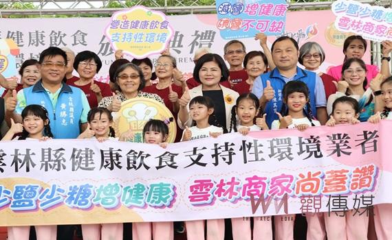 雲林縣政府今(14)日在斗六市膨鼠森林公園舉辦「雲林縣健康飲食支持性環境業者頒獎活動」,縣長張麗善表示,病從口入,依據本縣112年十大死因分析,多項慢性疾病,其中惡性腫瘤(癌症)、心臟疾病、糖尿病、腦血管疾病、高血壓及腎臟病變等,均與飲食攝取有關,雲縣衛生局從預防醫學開始做起,大力透過宣導及衛教,教導民眾遠離疾病少油鹽糖的均衡飲食。