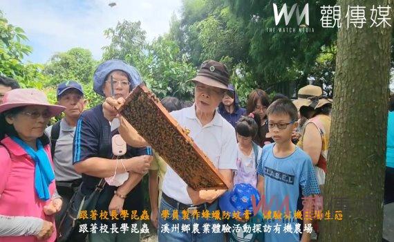 (觀傳媒彰化新聞)【記者陳雅芳/彰化報導】彰化縣溪州鄉公所辦理農業體驗活動,今(14)日安排的課程「跟著校長學昆蟲」,鄉長江淑芬帶領105名學員到前明道大學校長陳世雄經營的「City Bear 有機農場」,陳世雄、黃鐘頤中醫師指導學員製作蜂蠟防蚊膏,讓參加的大小朋友們學習到不一樣的農村生態循環樣貌。