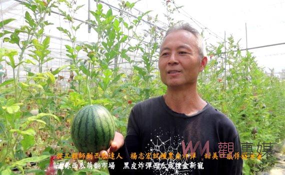 (觀傳媒彰化新聞)【記者陳雅芳/彰化報導】您有看過迷你小西瓜嗎?只有一顆壘球的大小,彰化縣埔鹽鄉瓜農楊志宏今年試種日本品種黑皮炸彈西瓜,甜度大約8~10度,重量只有紅肉大西瓜的30分之1,他針對國人喜歡蔬瓜新鮮的飲食習性,瓜果可供一至兩人食用就採收,絕不貪大。