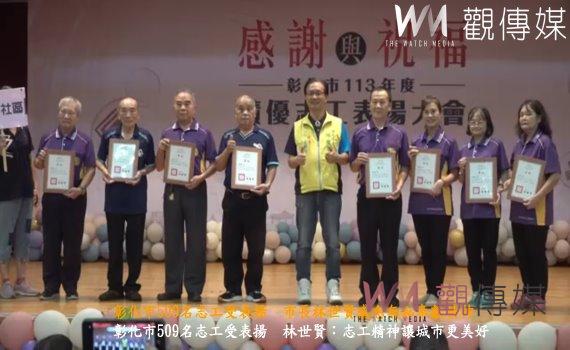 (觀傳媒彰化新聞)【記者陳雅芳/彰化報導】彰化市公所今(22)日,在彰化生活藝文館舉行優良志工表揚活動,來自各社區、國小愛心媽媽團隊及公所的84支志工隊伍,共509名志工獲得表彰,市長林世賢特別感謝志工們長期無怨無悔地付出,讚揚他們用愛心與行動,點亮了彰化市的每一個角落。