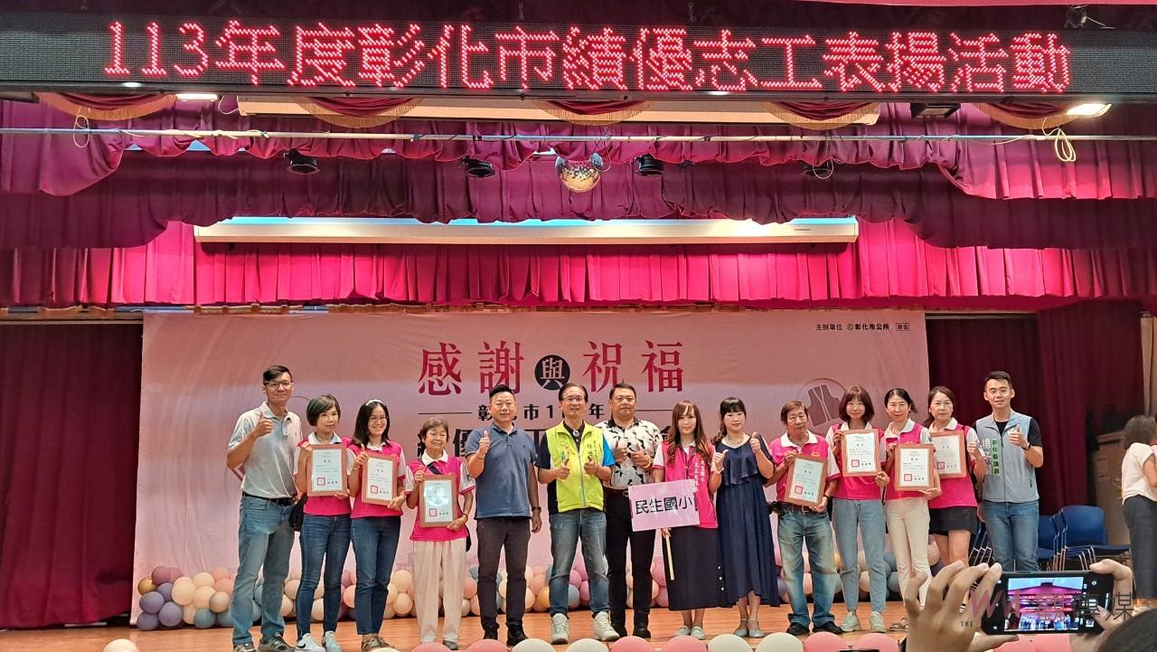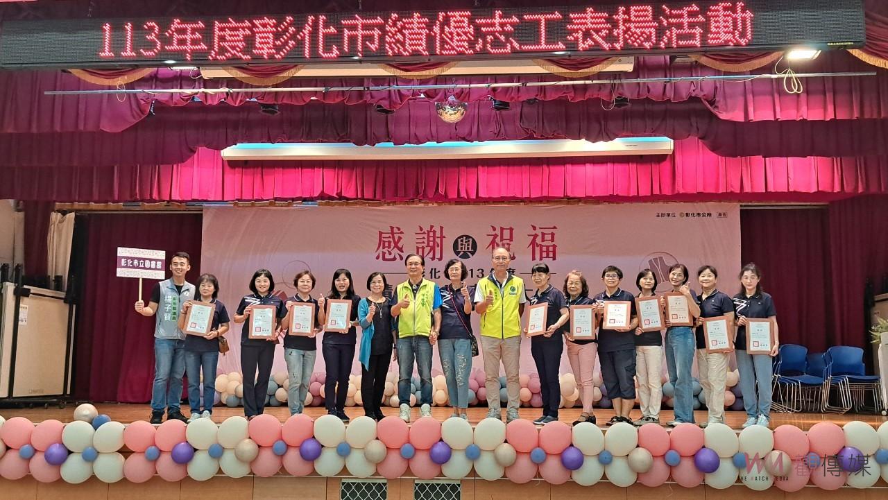 ▲彰化市公所在彰化生活藝文館舉行優良志工表揚,有多達84支志工隊509名志工受到表彰。