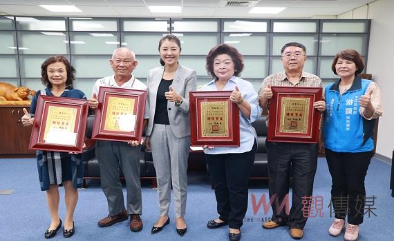 (觀傳媒中彰投新聞)【記者石振賢/南投報導】內政部表揚113年特優村里長,南投縣有四位村里長獲獎,包括南投市戰姵鈴、埔里鎮王金貞、集集鎮林素玲、及中寮鄉廖俊松。縣長許淑華23日頒贈祝賀獎牌,對基層村里長年奉獻、投入為民服務工作表達謝意。