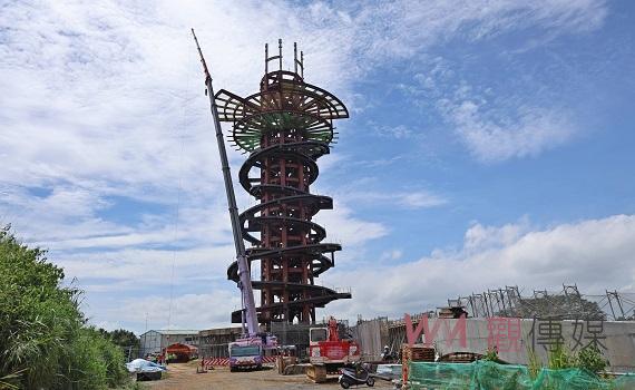 (觀傳媒中彰投新聞)【記者石振賢/南投報導】南投縣名間鄉松柏嶺「松嶺之星」高空觀景平台工程進度達6成,23日吉時舉行上樑儀式,由縣長許淑華縣長偕副縣長王瑞德率縣府觀光處、建築師、營造廠團隊,在法師持咒灑淨後,眾人虔誠上香祈福後圓滿吊掛安裝完成鋼構及內外旋梯最後一節(第5節)鋼構主樑鋼筋。