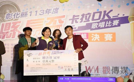 (觀傳媒彰化新聞)【記者陳雅芳/彰化報導】彰化縣113年度「縣長盃卡拉OK歌唱比賽」,今(28日)在彰化市南郭國小舉行總決賽,40名選手從四場初賽中脫穎而出,參加長青組和社區組的比賽,彰化縣長王惠美到場為選手加油,社區組冠軍為巫鴻裕(歌曲:《愛如潮水》),長青組冠軍為陳玉堂(歌曲:《賣菜義仔》)。
