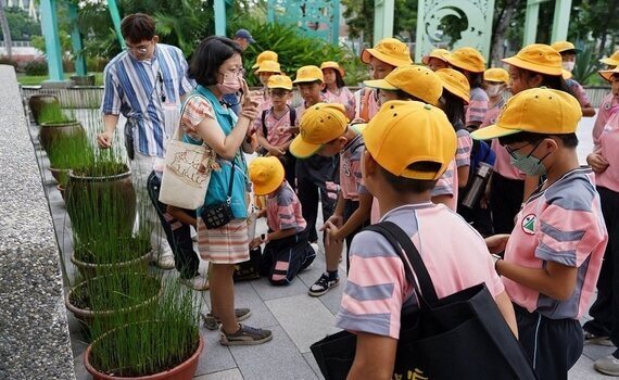 ▲臺中市纖維工藝博物館傳藝新纖人活動由導覽志工帶領學童認識編織工藝植物。