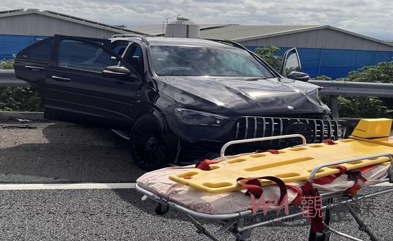 今(4)日上午8時40多分許,一輛由33歲蘇姓男子駕駛的白色自小客車,載乘蘇姓、鄭姓和莊姓3名男乘客,行經國道一號北上232.7公里處,突不明原因擦撞車道內側護欄後停在內側車道上,而後隨乘載四人的黑色賓士車,疑因閃避不及而追撞該事故白色自小客車。