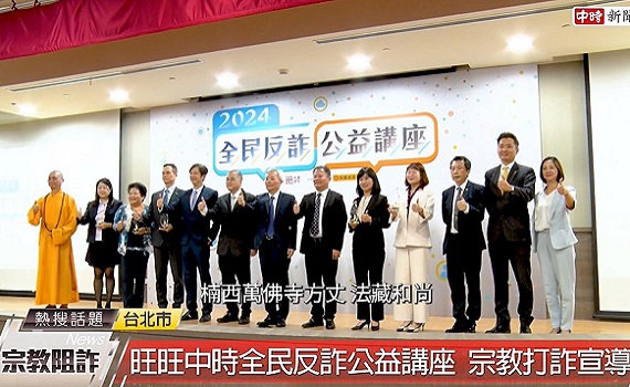 (觀傳媒編輯中心)【記者郭嘉 / 綜合報導】詐騙手法層出不窮,甚至有詐騙集團利用宗教名義誘騙信眾,因此在旺旺中時舉辦的全民反詐公益講座上,台灣宗教聯合會執行長、楠西萬佛寺方丈法藏和尚特別分享,在防治宗教詐騙前,最重要的就是教民眾如何辨別正信宗教。