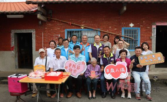 ▲重陽節前夕,員林市公所主任秘書賴冠宇等人,走訪百歲人瑞,市公所致贈每位人瑞「福祿壽」金戒指一只及禮品。