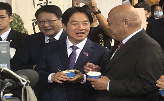 (觀傳媒大台北新聞)【記者張英傑/台北報導】中華民國生日快樂!賴清德總統跟蕭美琴副總統,以及眾多國內外訪賓,10日晚間一起出席「中華民國113年國慶酒會」,適逢9日是吐瓦魯國總理戴斐立(Feleti Teo)生日,賴總統特地以紅蟳米糕當蛋糕,祝戴斐立生日快樂。