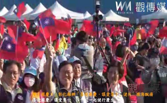 (觀傳媒彰化新聞)【記者陳雅芳/彰化報導】「中華民國生日快樂」!彰化縣政府於今(10)日上午在彰化縣立體育場舉辦「喜迎國慶.讓愛集十」健行活動暨公益園遊會,彰化縣長王惠美與近4千民眾參加升旗典禮,許多民眾和小朋友們揮舞著國旗、穿著國旗衣,一起唱國歌,王惠美說,希望能凝聚國人的愛國心,一起為這塊土地奮鬥。