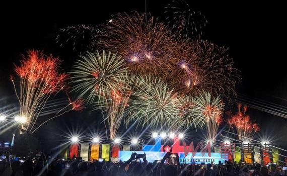(觀傳媒雲林新聞)【記者蘇榮泉/雲林報導】2024年國慶焰火於10月10日晚間在雲林縣虎尾鎮高鐵特定區盛大登場,吸引逾30萬名民眾齊聚慶祝中華民國113歲生日。總統賴清德、立法院長韓國瑜、雲林縣長張麗善與海內外政要共同參與,隨著焰火點亮夜空,現場氣氛熱烈,音樂與煙花交織出一場震撼的視覺饗宴。