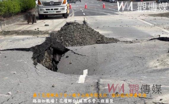 (觀傳媒彰化新聞)【記者陳雅芳/彰化報導】驚悚一幕!這部是被砲彈摧毀的!彰化縣花壇鄉南下台一線中山路今(11)日下午1點半炸開大洞,路面裂開面目全非,整條道路約30公尺長路段崎嶇不平,猶如被砲彈轟炸過,公路局彰化工務段指出,疑似水公司在埋設鳥嘴潭管線測試時造成路面炸開,所幸無人員受傷,詳細原因已進行釐清。