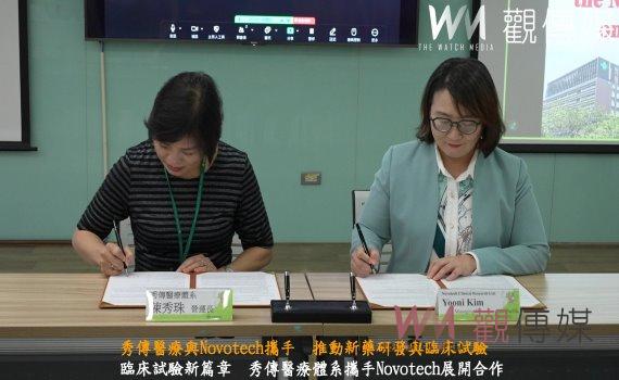 ▲秀傳醫療體系與亞太地區最大受託研究機構(CRO)-諾佛葛(Novotech)公司共同簽署臨床試驗合作備忘錄,並舉行揭牌儀式。