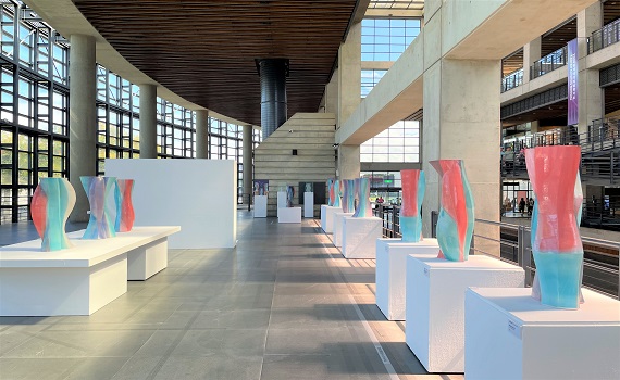 (觀傳媒新北新聞)【記者蔡宇辰/新北報導】新北市鶯歌陶瓷博物館發現光彩奪目的寶石,原來是美國陶藝家大衛莫里斯(David Morris)運用3D科技列印、手捏、拉坯成形技法,飾以彩色釉料,呈現遠古釉彩之美的28組件作品,多彩耀眼為觀眾獻上輕奢感。「曲線碰撞—大衛莫里斯個展」,即日起至11月3日止於陶博館1F陽光特展室展出,歡迎民眾把握展期前往欣賞。