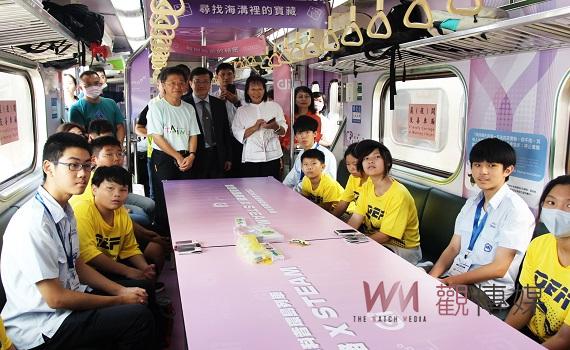 ▲科普列車停靠斗南站後,改由雲林縣學生登上列車體驗科學實驗直至嘉義站。
