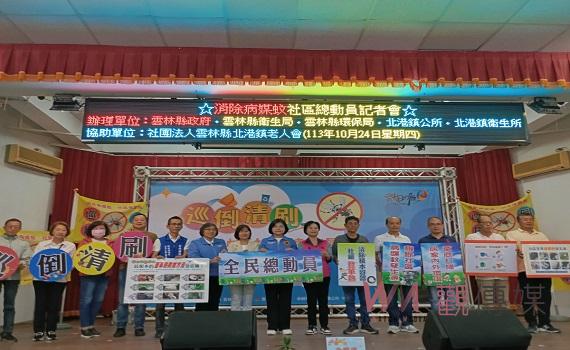 ▲雲林縣衛生局24日在北港鎮老人會館,舉辦「消除病媒蚊社區總動員」孳清滅孓授旗誓師活動。