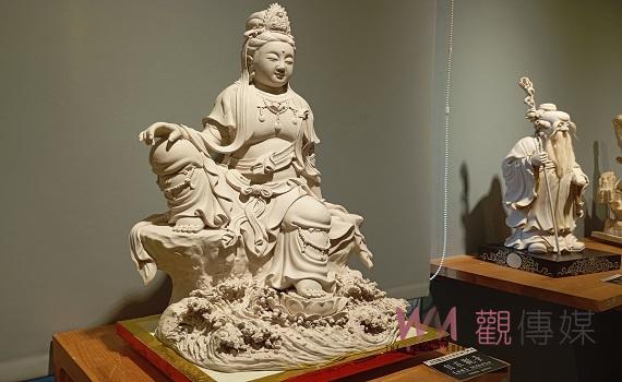 蘇榮凌老師表示,這次展出的作品有用泥土把它捏出形狀的泥塑、木材切割鑿刻的雕刻,包括四大美人、土地公、魁星踢斗、孔明、自在觀音、文殊普賢、關聖帝君等等,展出泥塑加法的工藝、木雕減法的工藝。