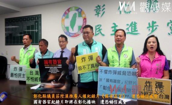 (觀傳媒彰化新聞)【記者陳雅芳/彰化報導】彰化縣議員莊陞漢於11月1日在彰化市生活藝文館安排播映有關大陸人權的紀錄片《國有器官》,卻因該活動接獲恐嚇信而備受矚目。今(30)日,彰化縣議會民進黨團表示,將不懼炸彈恐嚇,繼續力挺該紀錄片的巡迴播映。