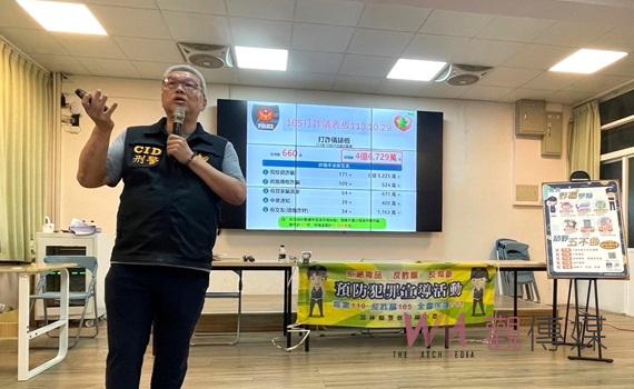 ▲針對高風險族群進行反詐騙與反毒宣導,這場講座在北辰國小視聽教室舉行。