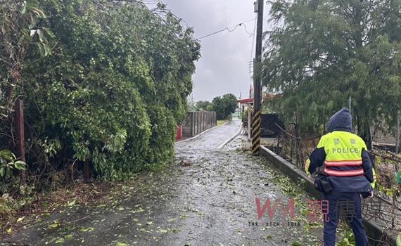 (觀傳媒雲林新聞)【記者蘇榮泉/雲林報導】強颱康芮來勢洶洶,雲林縣因颱風影響於10月31日停班停課,隨著風雨逐漸增強,西螺警分局轄區出現零星災情。警方陸續接獲多起報案,包括路樹倒塌和電線掉落等情況,分局警員即時趕赴現場設置警戒,並通報災害應變小組前來清理,避免進一步災害發生。此次應變得當,未發生人員傷亡。