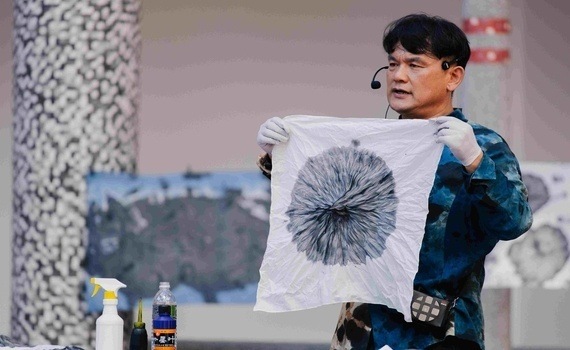 ▲韓國釜山白松天然染色教育院劉昌旿院長示範墨染技藝。